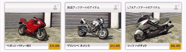 初期からあるバイクおよび「バイカーアップデート」で追加されたバイクは比較的安価になっている。