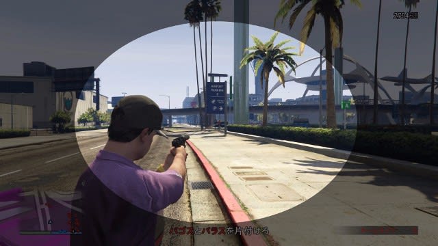実はロスサントスには左利きの人は存在せず、プレイヤーは必ず右利きであり、体の右側に銃を構える。