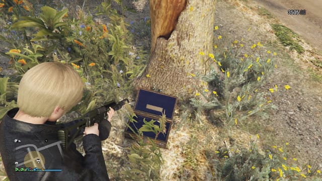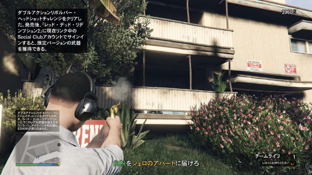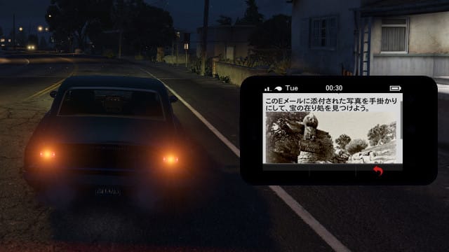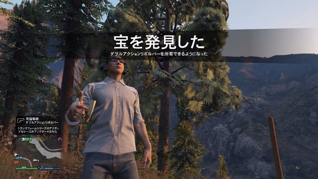 「トレジャーハント」はメールで送られてくるミッションで、その名の通りメールで送られてくる画像とヒントを頼りにロスサントスの各地を巡って「手掛かり」を集めるもので、クリアすると「お宝」としてRDRシリーズに登場していた武器「ダブルアクションリボルバー」を入手できるというもの。