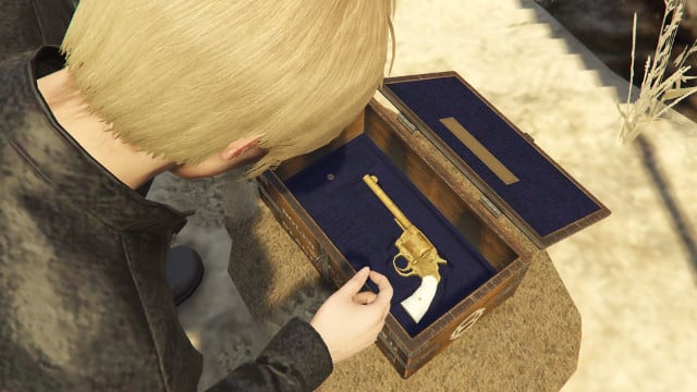 ダブルアクションリボルバー入手後に解除される「ダブルアクションリボルバー・ヘッドショットチャレンジ」をクリアすると、報償としてGTAオンラインでの$25万と、RDR2での武器の専用カラーが解禁される。チャレンジの相手はNPCでもカウントされるので、手配度がつかないミッションで暴れるか、装甲車に乗って暴れていれば簡単に達成できるだろう。ちなみにチャレンジ報酬を受け取れるのは一回のみ。