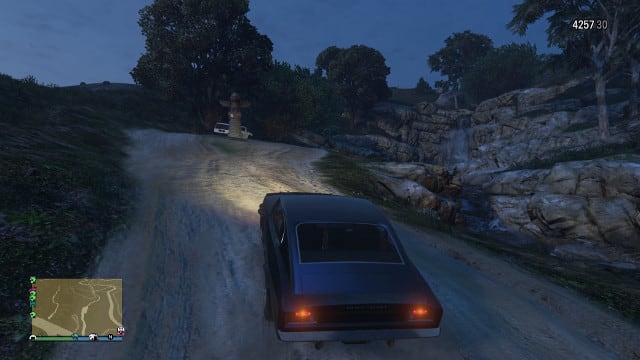 今回の「トレジャーハント」はボスジョブの「トラベラー」に似ているが、普段は行かないような山の奥に「手掛かり」があることもある。ちなみにこの渓流、浅いのに車を停めておくと水没故障扱いになる場合があるのでご注意を。